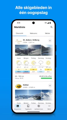 Duik dieper in de specificaties met een schat aan informatie binnen handbereik. Met bergfex: Ski, Sneeuw & Weer heeft u direct toegang tot dagelijks bijgewerkte sneeuwhoogtes en de status van geopende pistes, naast een betrouwbare 9-daagse weersvoorspelling voor de gehele Alpenregio. Geniet van het uitzicht via meer dan 5000 webcams, waarvan ruim 500 met live videostreams, en plan uw route met haarscherpe pistekaarten van elk resort. Vergelijk skipasprijzen, vind de perfecte ski-uitrusting bij verhuurlocaties en boek moeiteloos accommodaties. Bovendien biedt de app essentiële lawine-informatie voor een veilige ervaring op en naast de piste. Voeg uw favoriete skigebieden toe voor een gepersonaliseerd overzicht, zodat u altijd de meest relevante informatie ziet.