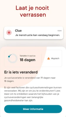 Ontdek een dieper begrip van je lichaam met Clue, de ultieme gids voor menstruatie-, vruchtbaarheids- en zwangerschapsinzichten. Clue biedt een persoonlijke en veilige omgeving waar je moeiteloos je cyclus kunt volgen en antwoorden vindt op al je vragen, van subtiele signalen tot belangrijke mijlpalen. Ervaar het gemak van nauwkeurige voorspellingen voor je menstruatie, ovulatie en vruchtbare dagen, zodat je altijd in harmonie bent met jouw unieke ritme. Clue is jouw betrouwbare partner, ontworpen om elke fase van je reproductieve gezondheid te ondersteunen, en maakt het navigeren door je cyclus verrassend eenvoudig en inzichtelijk.
