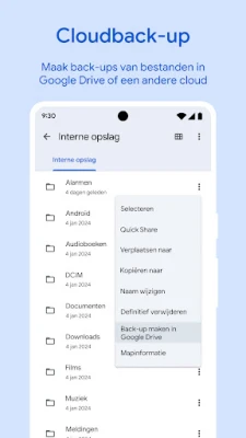 Laat Files by Google voor u denken. De app levert steeds slimmere aanbevelingen naarmate u deze vaker gebruikt, en wijst u op nieuwe mogelijkheden om opslagruimte te optimaliseren en de levensduur van uw apparaat te verlengen. Verplaats eenvoudig bestanden naar Google Drive of een SD-kaart voor langdurige archivering, of integreer met andere cloudopslagdiensten die u reeds gebruikt. Ontworpen door Google, is Files by Google opmerkelijk lichtgewicht, met een footprint van minder dan 20 MB, en biedt het een intuïtieve, volledig advertentievrije ervaring. Het is uw vertrouwde partner voor een opgeruimd en efficiënt digitaal ecosysteem.