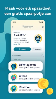 Begin met een frisse kijk op uw dagelijkse bankzaken. De Knab App transformeert de manier waarop u uw geld beheert, van privérekeningen tot gezamenlijke en zakelijke financiën, inclusief de optie voor extra betaal- en spaarrekeningen. Verstuur gemakkelijk betaalverzoeken, beheer uw betaalpas met een tik en betaal contactloos met Apple Pay of Google Pay. Bovendien maakt de Knab App slim sparen intuïtief, met persoonlijke spaarpotjes, duidelijk inzicht in opgebouwde rente en de mogelijkheid om automatisch te sparen, zodat uw financiële doelen binnen handbereik komen.