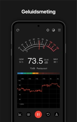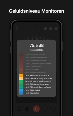 Ontdek de onzichtbare wereld van omgevingsgeluid met Geluidsmeter, uw persoonlijke partner voor geluidsanalyse direct vanaf uw smartphone. Deze ingenieuze applicatie transformeert de microfoon van uw toestel in een nauwkeurige decibel (dB) meter, waarmee u direct inzicht krijgt in de geluidsdruk om u heen. Visualiseer geluidsniveaus in real-time en begrijp de akoestiek van elke ruimte. Houd er rekening mee dat hoewel Geluidsmeter een uitstekend indicatief hulpmiddel is, de meetwaarden kunnen afwijken van die van professionele geluidsdrukniveaumeters. Het is uw toegankelijke tool voor dagelijkse geluidsbewustwording.