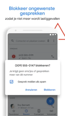 De Telefoon-app van Google transformeert uw belervaring door u meer controle en gemoedsrust te geven. Zeg vaarwel tegen storende oproepen van spammers, telemarketeers en ongewenste bellers; deze app voorziet u van tijdige waarschuwingen en de mogelijkheid om hinderlijke nummers direct te blokkeren. U ziet in één oogopslag welke bedrijven u benaderen, dankzij de uitgebreide beller-ID functionaliteit. Dit zorgt ervoor dat u altijd weet wie er aan de lijn is, nog voordat u opneemt, en helpt u weloverwogen beslissingen te nemen over welke gesprekken u wel of niet wilt voeren.