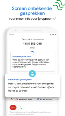 De Telefoon-app gaat verder dan alleen identificatie; het biedt een slim systeem voor gespreksscreening dat onbekende bellers voor u afhandelt. Potentiële spammers worden subtiel weggefilterd, zodat uw dagelijkse routine ongestoord blijft. Voor andere onherkenbare nummers kunt u belangrijke informatie inwinnen voordat u besluit op te nemen. Ook de voicemail wordt volledig vernieuwd: bekijk uw berichten visueel, speel ze af in de door u gewenste volgorde, lees transcripties en beheer ze eenvoudig, alles binnen de overzichtelijke interface van de app. Het gestroomlijnde ontwerp geeft u bovendien met één tik toegang tot uw favoriete contacten en een rustgevende donkere modus voor comfortabel gebruik en energiebesparing.